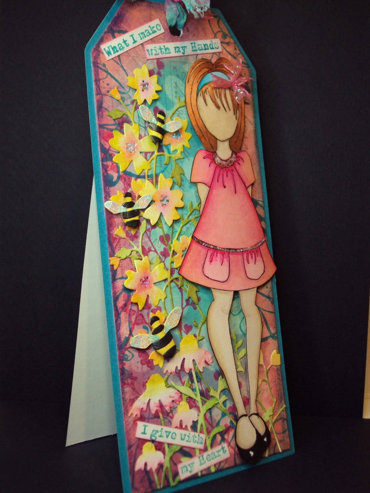 The background was coloured with Pan Pastels I coloured the fairy wings with Promakers, when I'd put all the elements together, I added loads of stickles!!!